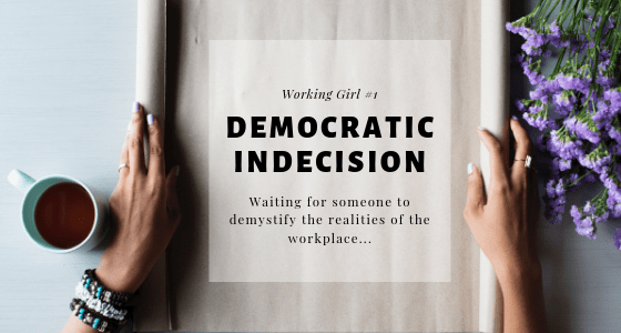 Told to make a decision but, once I made a decision and am ready to move along to the next thing, everyone wants to be a critic. I detest fake freedom. I want to soar. Free of constraints, free of your ego, free of petty plights. Sadly, I understand a leader's abhorrence to a democratic … Continue reading Working Girl #1